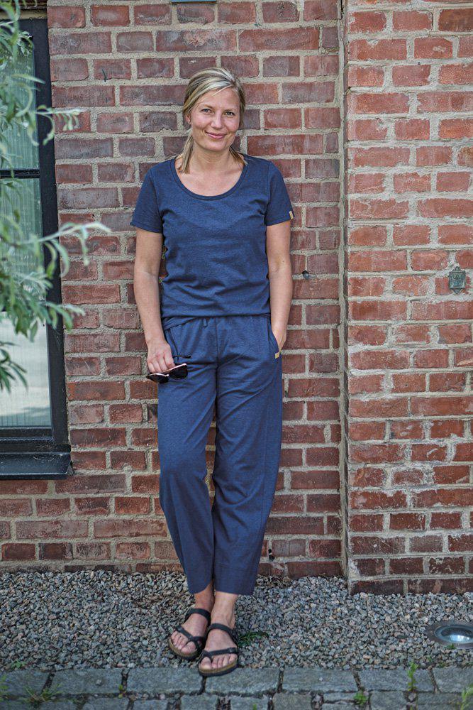Härlig top i en mix av ekologisk bomull och hamp. Ett härlig material med slubbeffekt, som ger extra liv och ett melerat uttryck. Litet logomärke i jacron på vänster ärmavslut.