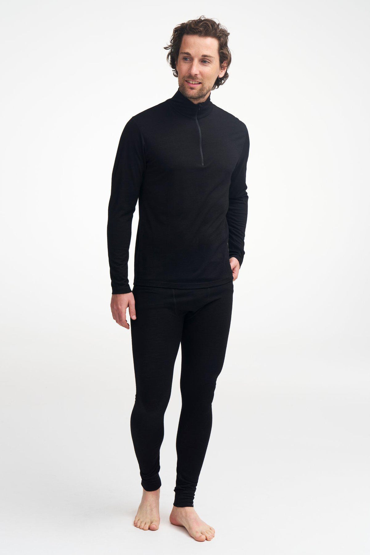 UNDERWOOL SONNY HALF ZIP, 100% EXTRA FINE MERINOULL — BLACK