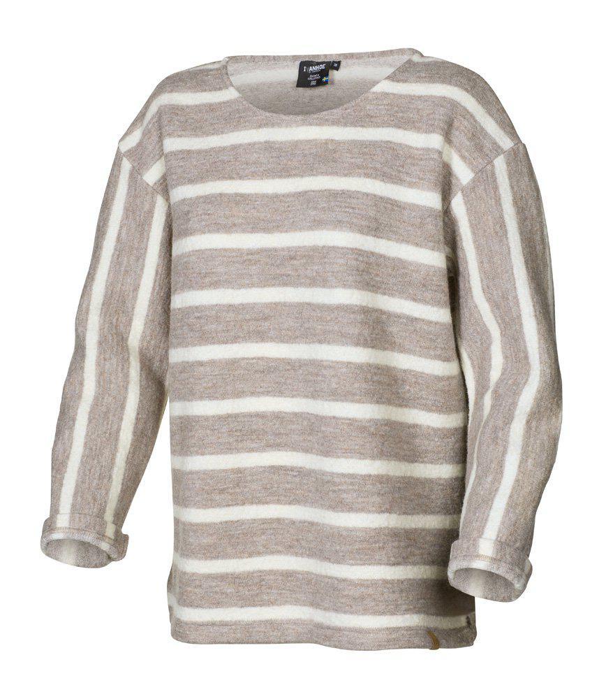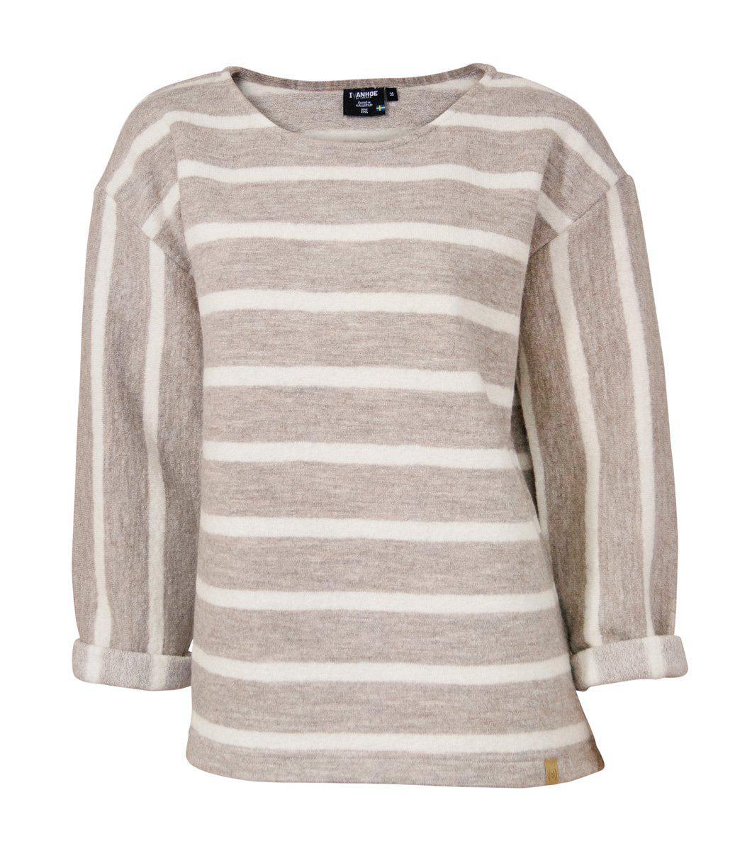 GY Bystad - Ein klassischer, gestreifter Pullover mit witzigen Details, die ihn besonders machen. Die Streifen sind am Körper und an den Armen in verschiedene Richtungen gedreht. Apropos Arme: Sie sind etwas großzügig geschnitten, was den entspannten und modischen Look ergibt, den wir bevorzugen. Das Material besteht aus 60 % Wolle und 40 % Lyocell (TENCEL™), unserer gewalkten Wolle, die sich zu einem sehr beliebten Material für Frühjahr/Sommer entwickelt hat.