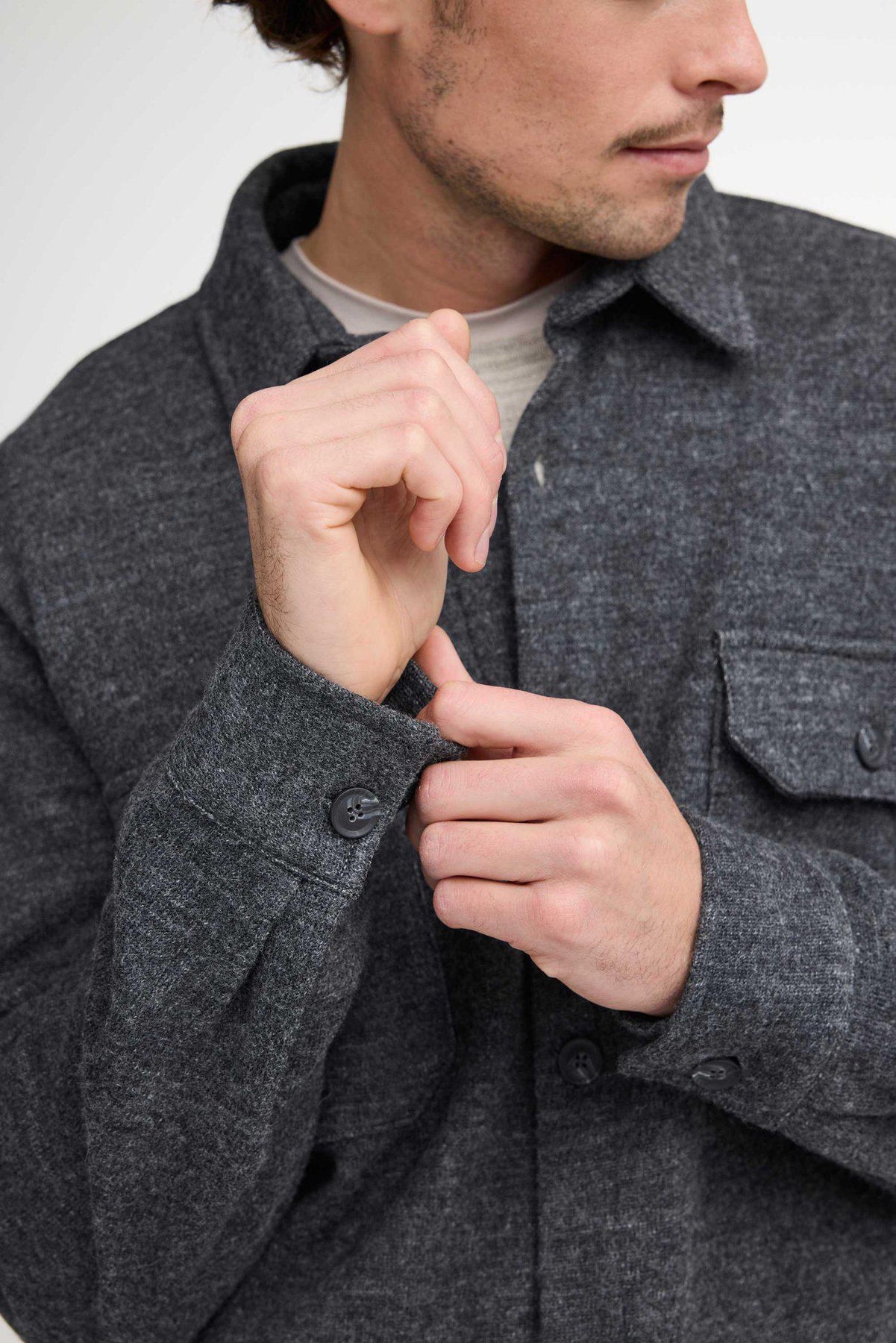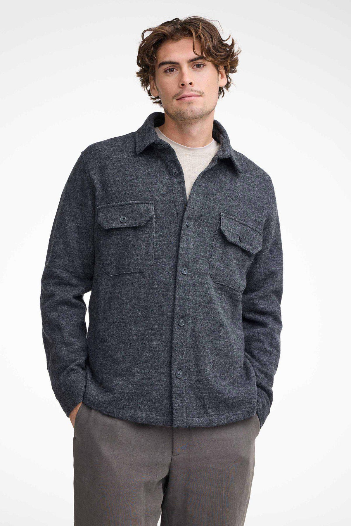 Stylisches Überhemd in 100% hochwertiger, gewalkter Merino-Qualität