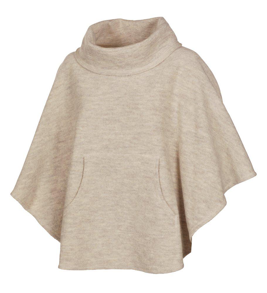 Poncho mit Kängurutasche auf der Vorderseite und großem, drapiertem Kragen. Super gemütlich! 450g gewalkte Wollqualität aus 100% ungefärbter Schurwolle.