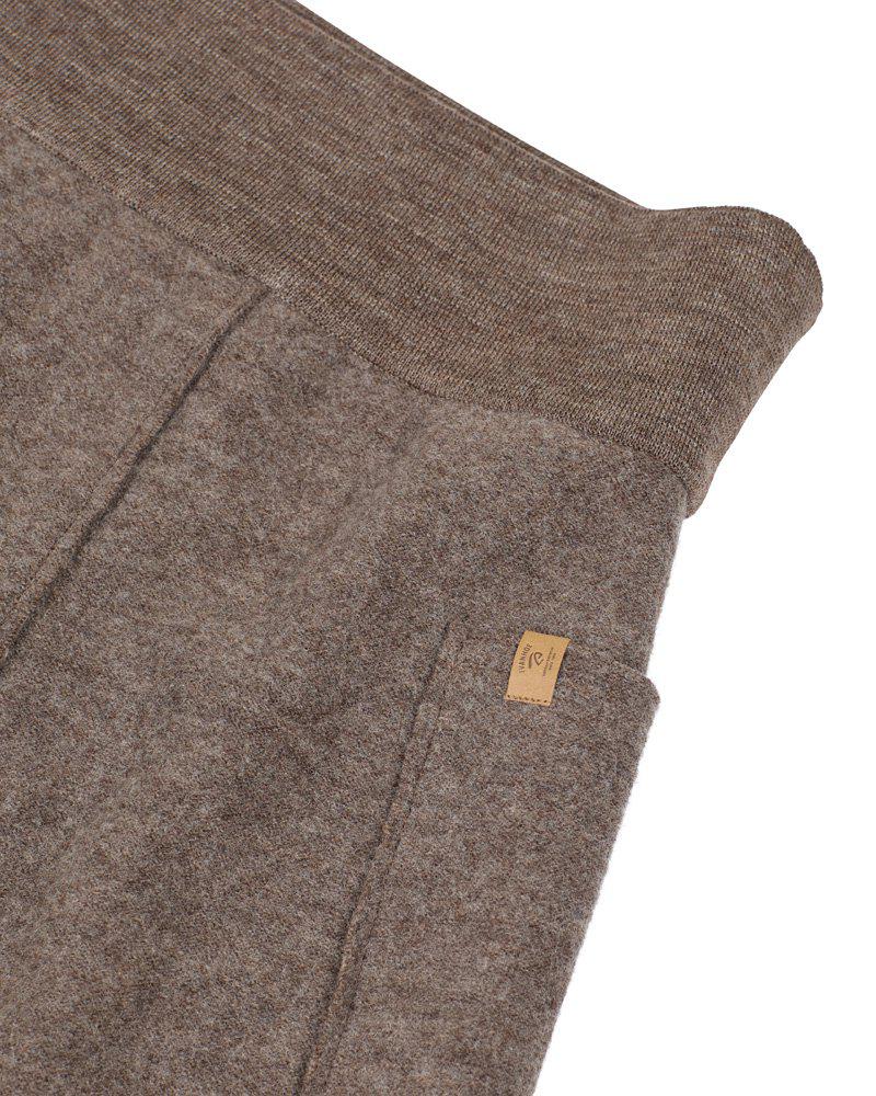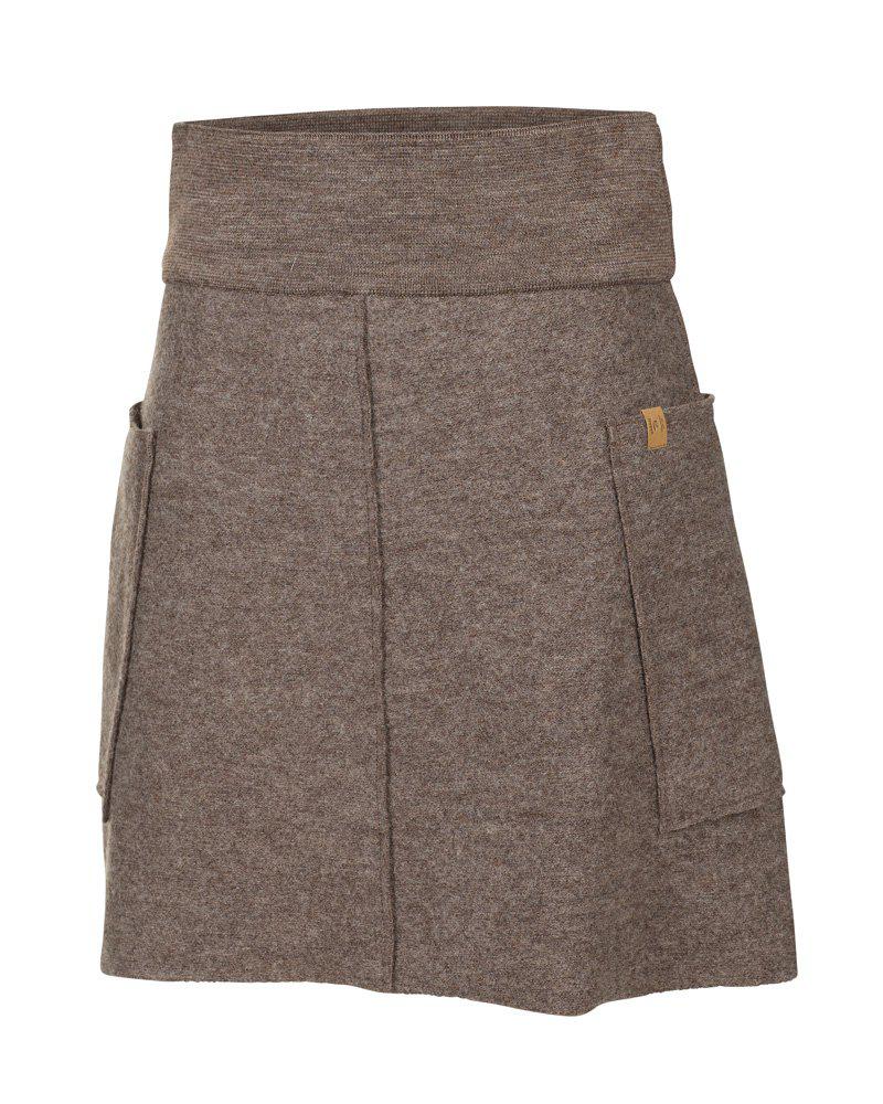 Rock aus 100% gewalkter Wolle mit großzügigen Seitentaschen. Dehnbarer Bund und kleines Logo-Badge aus Jacron. Größe 38 misst ca. 50cm.