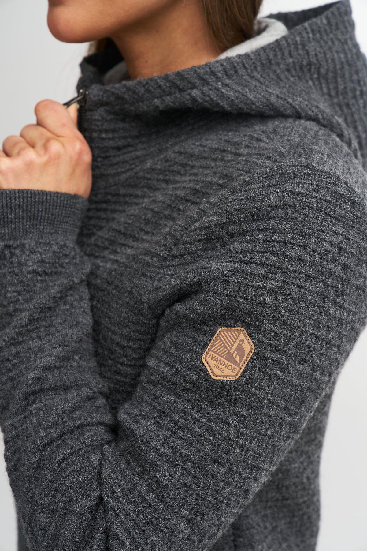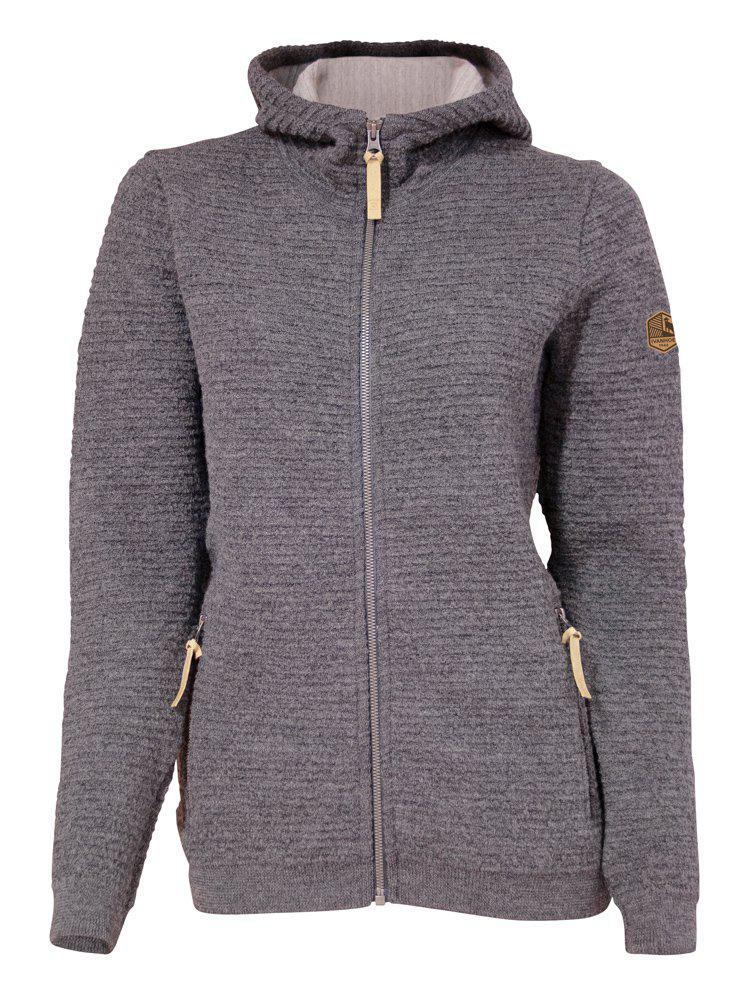 Morel hood female - Kapuzenjacke in einem 3D-Strick mit TENCEL® am Körper und 100% Wolle an der Außenseite. Die beim Stricken entstandenen Lufttaschen sind funktionell und verleihen einen einzigartigen Ausdruck. Rippstrickbündchen unten am Körper und an den Armabschlüssen. Mit Logo-Badge am linken Oberarm und unseren Jacron-Reißverschlusspullern vorne und an den seitlichen Taschen.