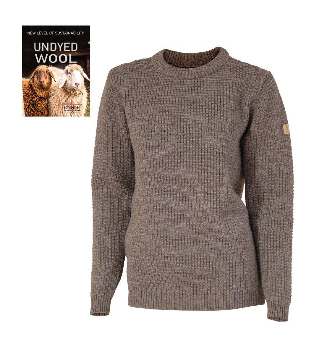 Klassischer Pullover mit Rundhalsausschnitt aus 100% ungefärbter Schurwolle. Strukturstrick am Körper, Rippstrickbündchen am Kragen, an den Armen und unten am Körper. Der Pullover ist sehr leicht und bequem - ein zeitloser Klassiker, an dem Sie viele Jahre Freude haben werden.