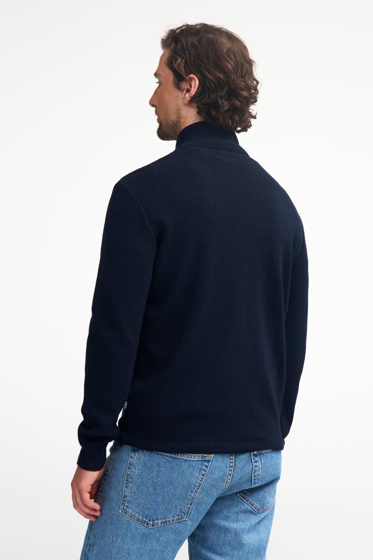 Strickjacke aus Merinowolle mit durchgehendem Reißverschluss und stilvollem, klarem Ausdruck. Die Wolle ist superweich und natürlich mulesingfrei! Eignet sich perfekt als Übergangsjacke, als wärmende Schicht unter einer Jacke oder einfach als Wolljacke im Büro - es liegt ganz an Ihnen. Zip-Puller aus Jacron und kleines Logo-Badge unten am linken Arm.