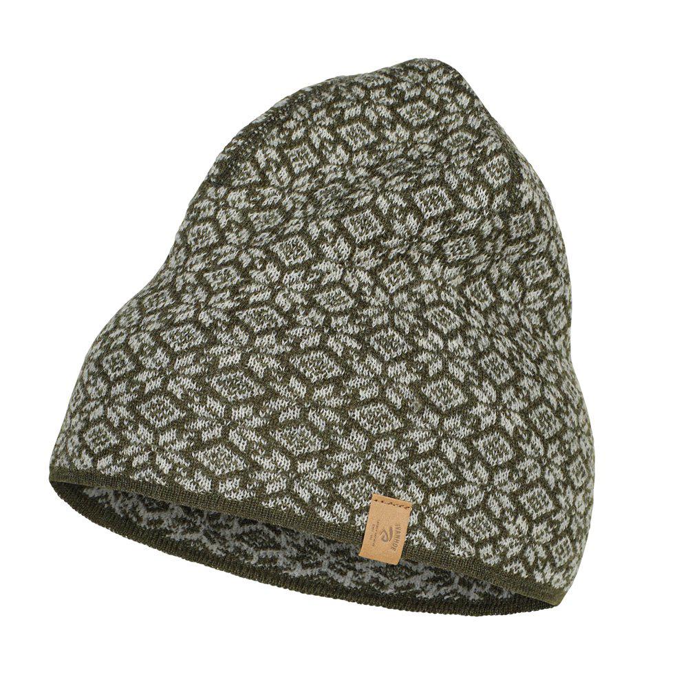 Mütze aus 100% Wolle mit schönem Jaquard-Muster. Kleines Logo-Badge links vorne. Einheitsgröße.