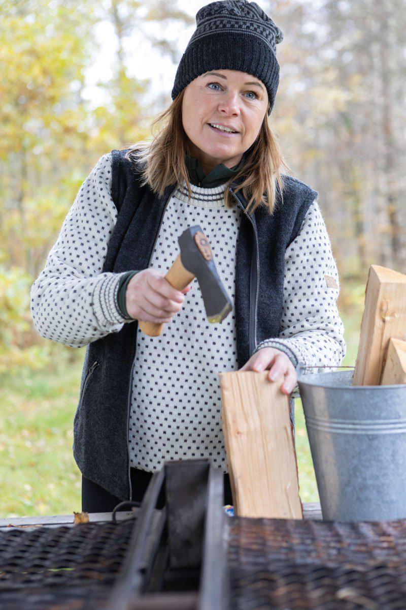Entfernen Sie Schmutz und Flecken sofort nachdem sie entstanden sind und hängen Sie dann den Pullover auf einem Kleiderbügel ins Freie. Es ist nur von Vorteil, wenn draußen ein bisschen feuchtes Wetter ist. Die Wolle weist Schmutz ab und bricht Bakterien nieder und ist damit selbstreinigend und geruchsfrei.