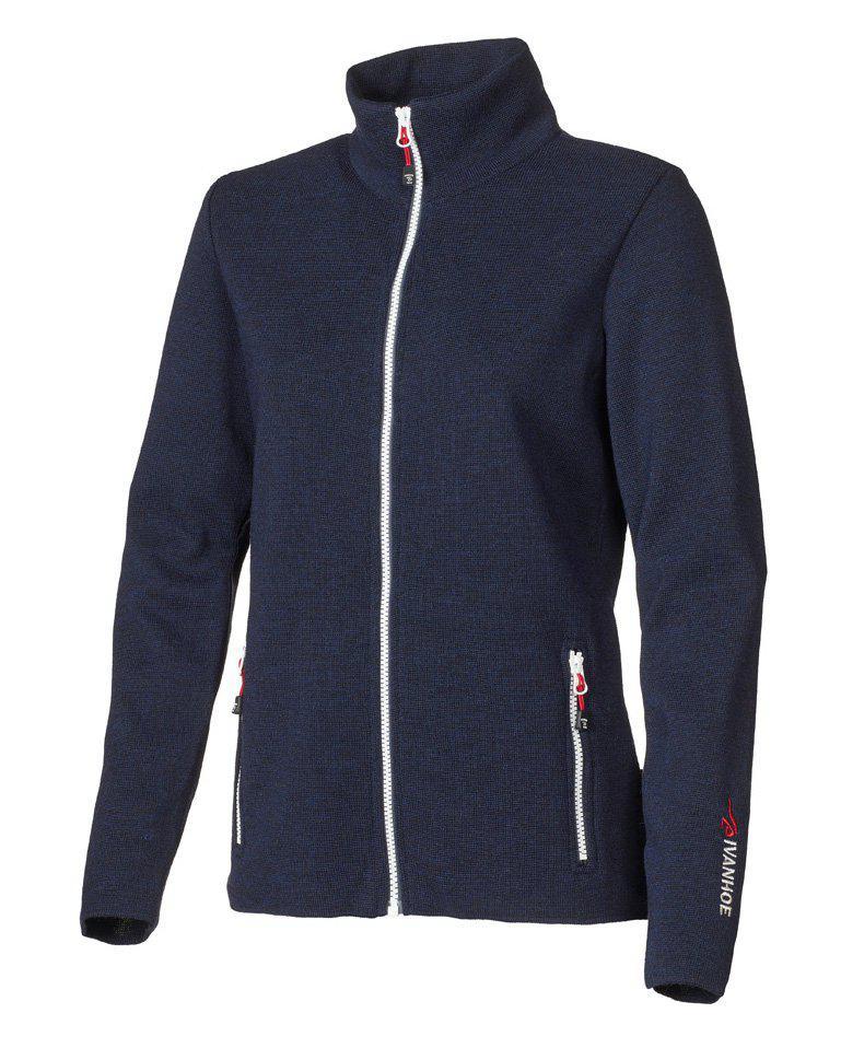 Hedda full zip - Damen-Jacke mit durchgehendem Reißverschluss aus 100% extrafeiner, mulesingfreier Merinowolle im weichen, leichten und bequemen Half-Milano-Strick. Seitliche Reißverschlusstaschen und Logo-Stickerei am unteren linken Ärmel.