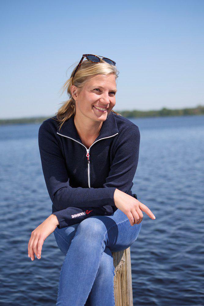 Hedda full zip - Damen-Jacke mit durchgehendem Reißverschluss aus 100% extrafeiner, mulesingfreier Merinowolle im weichen, leichten und bequemen Half-Milano-Strick. Seitliche Reißverschlusstaschen und Logo-Stickerei am unteren linken Ärmel.