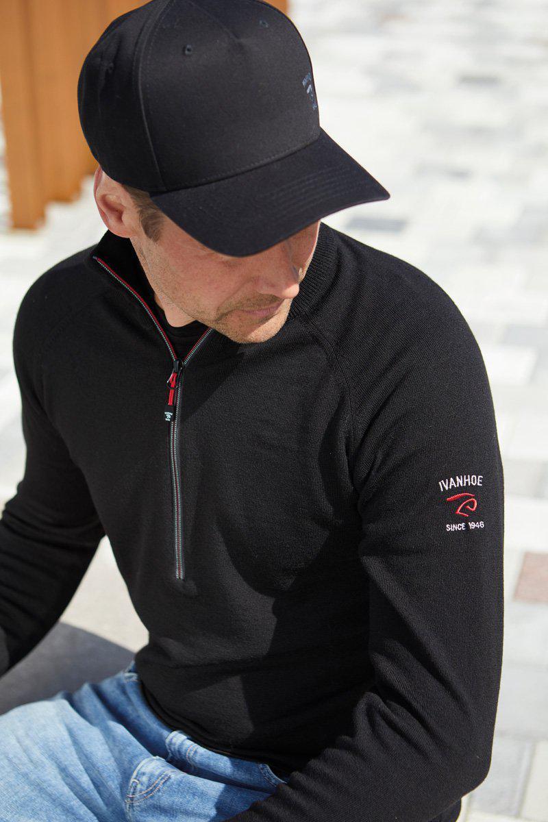 JOJJE HALF ZIP, 100% EXTRA FEINE MERINOWOLLE — SCHWARZ
